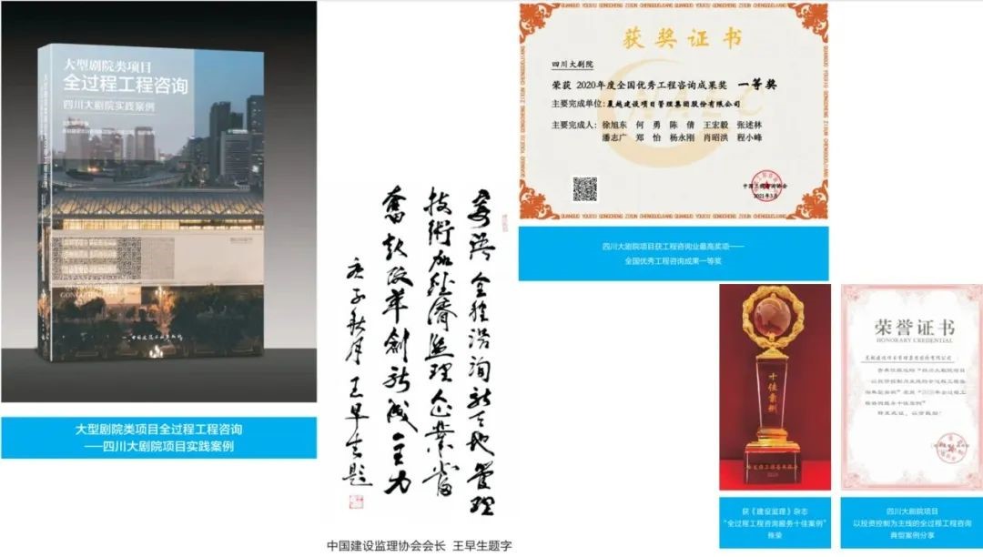 随后各方在会议室进行了详细交流,周密副站长主持会议。徐旭东主任详细介绍了四川大剧院项目建设管理重难点,及采用全过程工程咨询取得的各项管理成果,重点介绍了项目实施成本控制的具体方法及手段。徐主任进一步提到,基于项目全过程工程咨询实践总结,四川大剧院项目已形成论文、案例分析等多项理论成果,先后获得全国优秀工程咨询成果一等奖、四川省优质工程“天府杯”金奖等多项荣誉,并正式出版《大型剧院类项目全过程工程咨询——四川大剧院实践案例》著作。