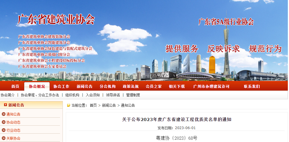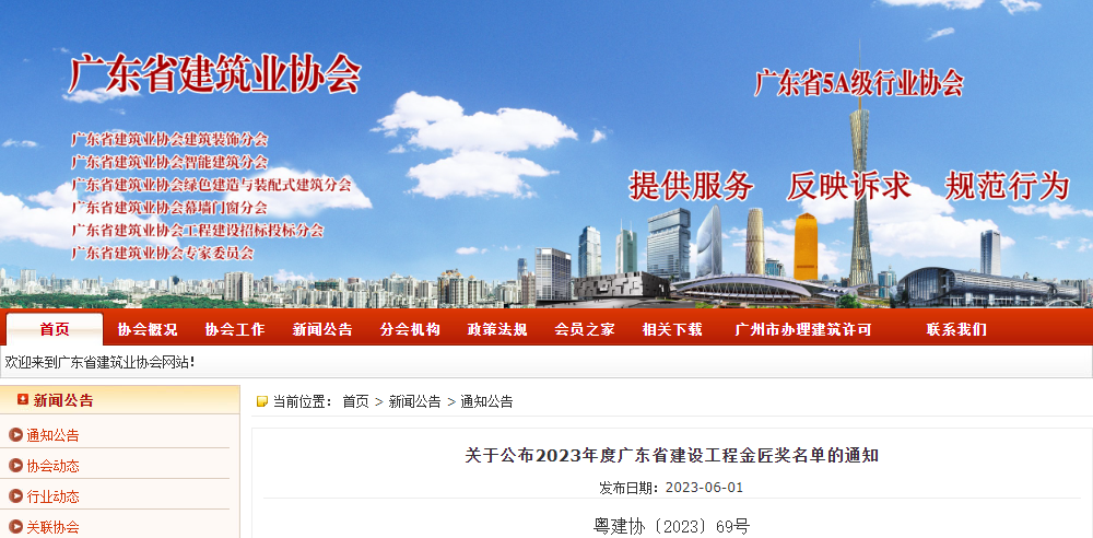 近日,广东省建筑业协会公布2023年度广东省建设工程“金匠奖”和“优质奖”名单,集团承接的万华花园项目、东莞市南城阳光第一小学分校项目同时荣获“金匠奖”和“优质奖”。