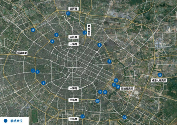 该项目分布于成都市二环高架、三环路、北星高架、双桂路、成洛大道等5条主要道路,共计19处点位的声屏障新建,高度3.5m,总长约5600m。