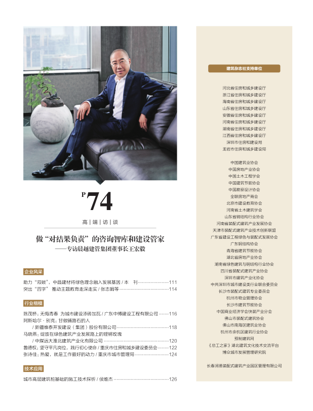 编者按:日前,晨越建管集团党委书记、董事长王宏毅应邀接受《建筑》杂志专访。王宏毅董事长对行业发展的全新认识及全咨发展的核心理论受到《建筑》杂志的高度重视和认可,专访文章于《建筑》杂志2023年第9期“高端访谈”专栏刊发。文章包括:从“第一股”到“全咨百强企业”第一名、以“对结果负责”引领全咨发展、锻造“咨询智库+建设管家”核心竞争力、“穿越周期 行稳致远”等四个版块,现编者将专访文章全文 呈现,以飨读者。