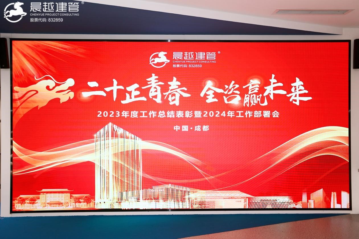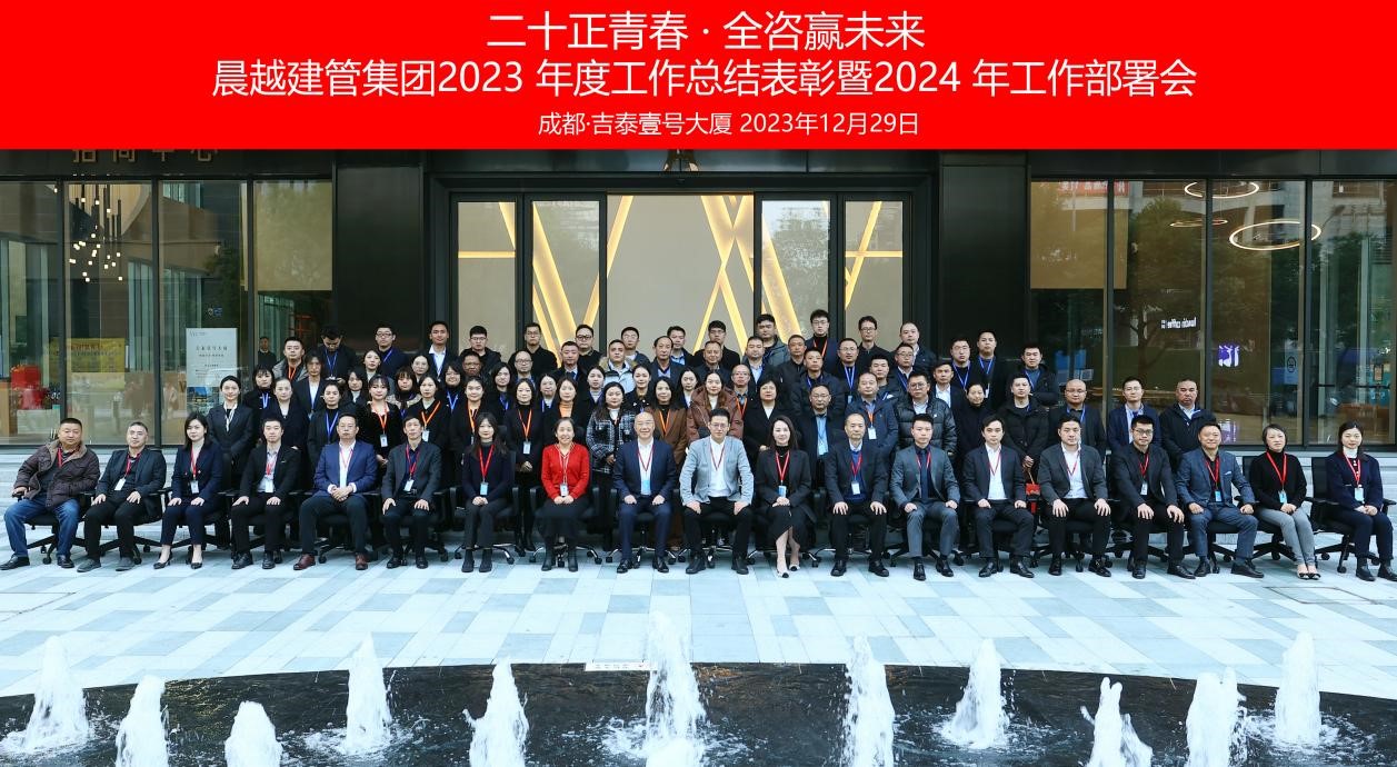 2023年12月29日,晨越建管集团“2023 年度工作总结表彰暨2024 年工作部署会”在吉泰壹号大厦隆重召开,本次会议以“二十正青春.全咨赢未来”为主题,集团党委书记、董事长王宏毅出席会议,集团营销体系、管理体系、生产体系及子公司主要领导及骨干以线上+线下方式参加会议。