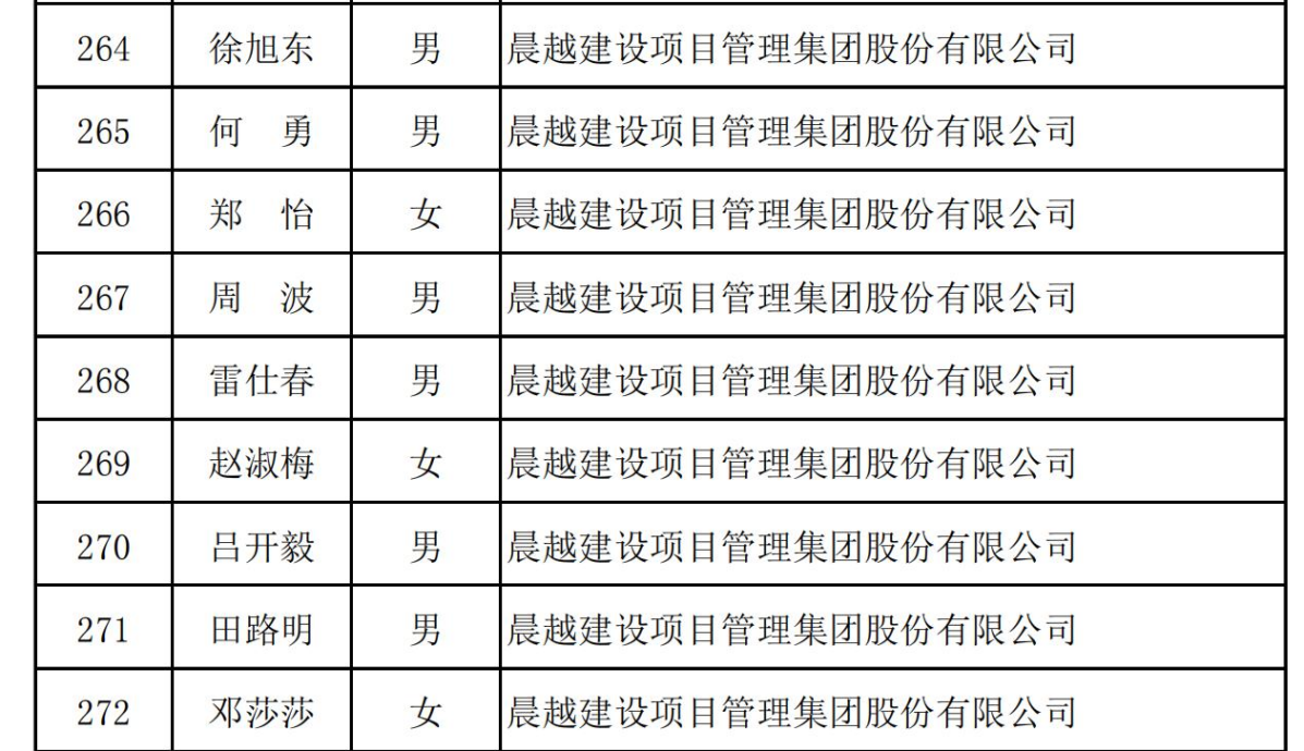 近日,中国工程咨询协会公布了第二批入库专家名单通知,晨越建管集团徐旭东、何勇、郑怡、周波、雷仕春、赵淑梅、吕开毅、田路明、邓莎莎等九人通过审核成为中国工程咨询协会第二批入库专家。