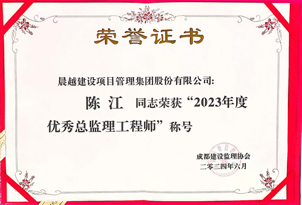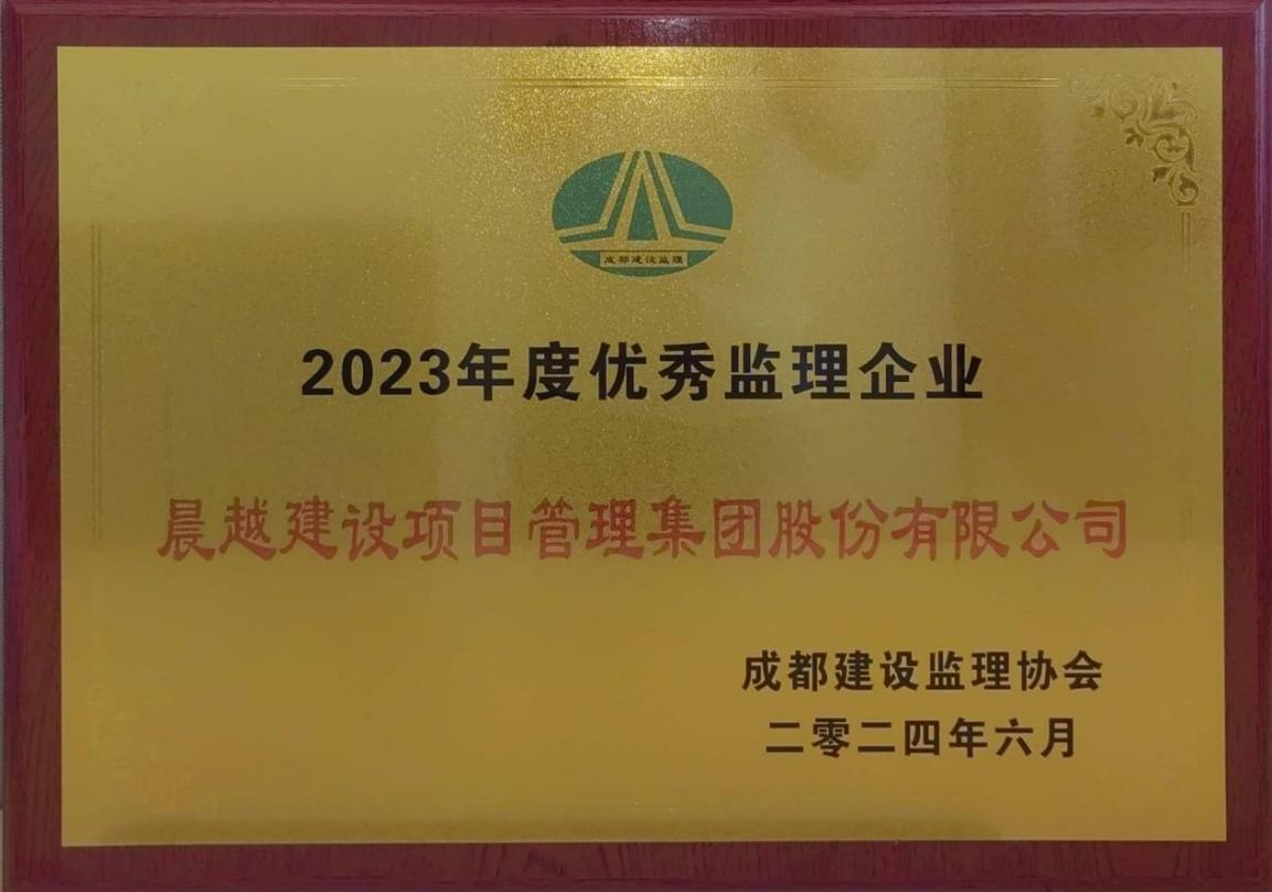近日,晨越建管集团喜获成都市建设监理协会颁发的“2023年度优秀监理企业”荣誉,四川省体育运动学校新校区项目获“2023年度示范项目监理机构”荣誉,集团总监陈江荣获“2023年度优秀总监理工程师”称号。