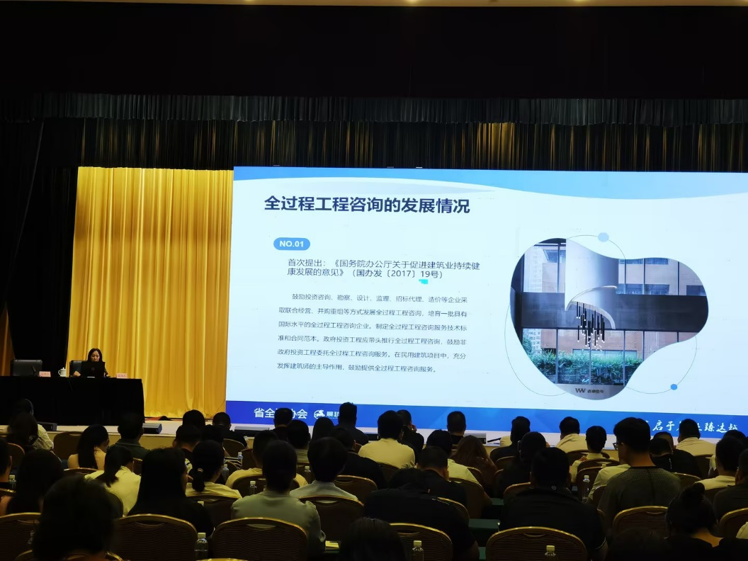 会上,陈代莲总以《全过程工程咨询服务分享》为题,从全过程工程咨询服务的发展情况、服务内容、优势,及全过程工程咨询单位的选择等四个方面进行授课。