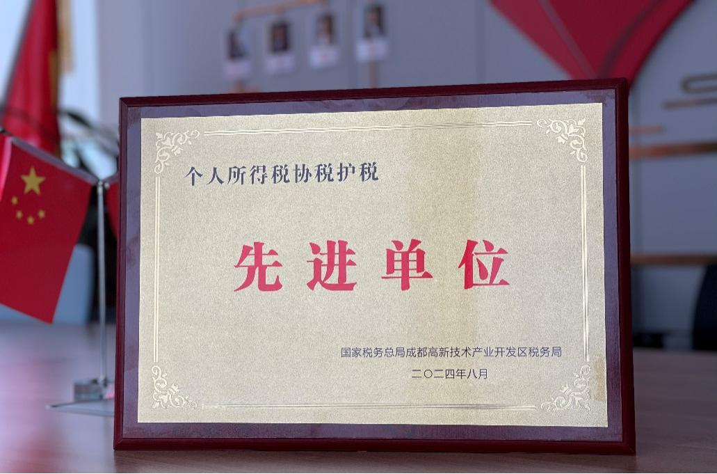 近日,国家税务总局成都高新技术产业开发区税务局授予晨越建管集团“个人所得税协税护税先进单位”荣誉证书,集团财务部曾凤、张雪琳荣获“先进工作者”荣誉。