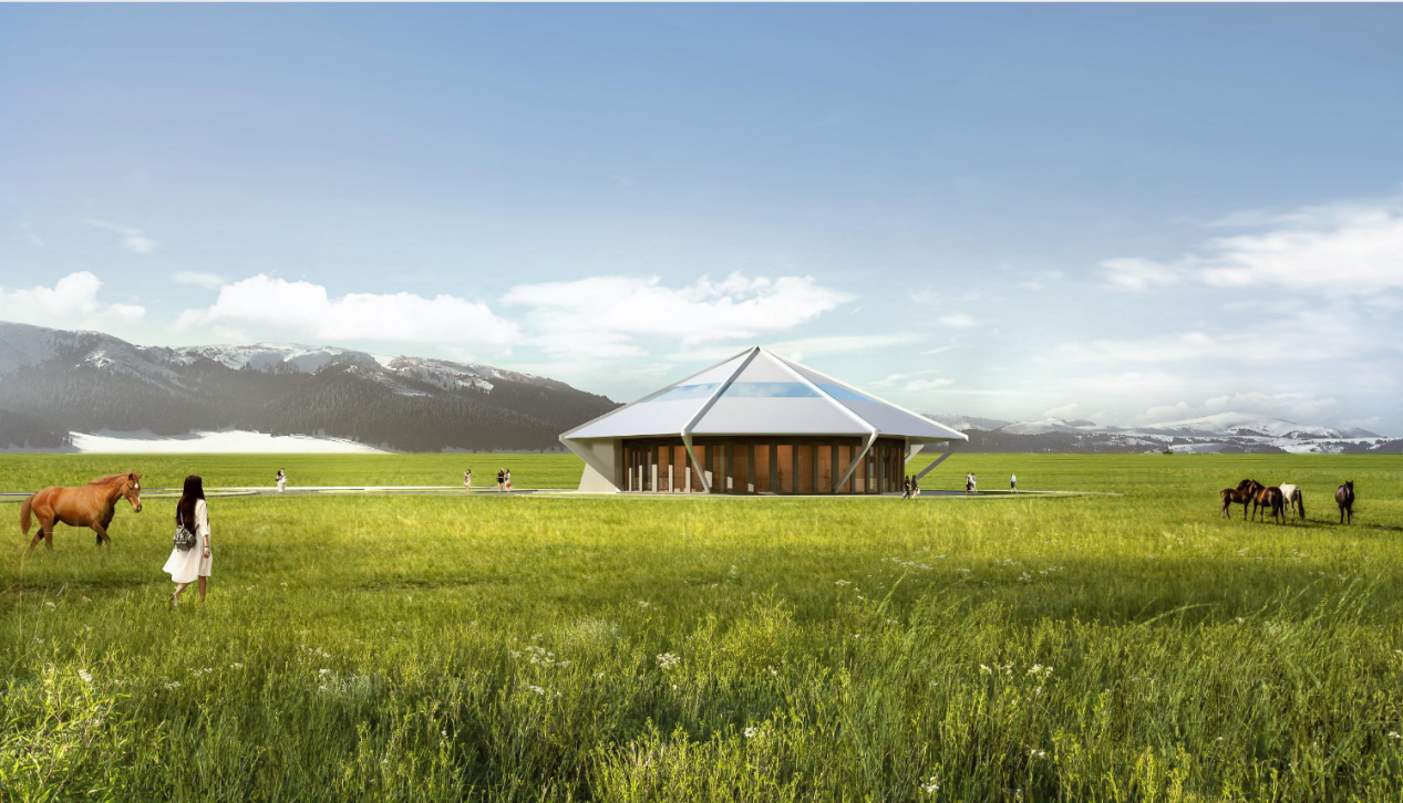 项目坐落于“大西洋最后一滴眼泪”——新疆赛里木湖西海草原,以“斗转星移,雪域飞舟”为核心理念,巧妙融合蒙古包的传统形制与现代科技。建筑外观借鉴游牧民族帐篷的流动线条,内部则通过全息投影、沉浸式声光等技术,打造“星空剧场”与“雪域秘境”两大主题空间。设计团队以低环境影响为原则,采用本土环保材料,实现建筑与湖光山色的共生,为游客提供“人在景中、景在戏中”的深度体验。项目不仅成为新疆文旅融合的标杆,更以“生态+文化+科技”的创新模式,推动自然观光向人文体验的升级。
