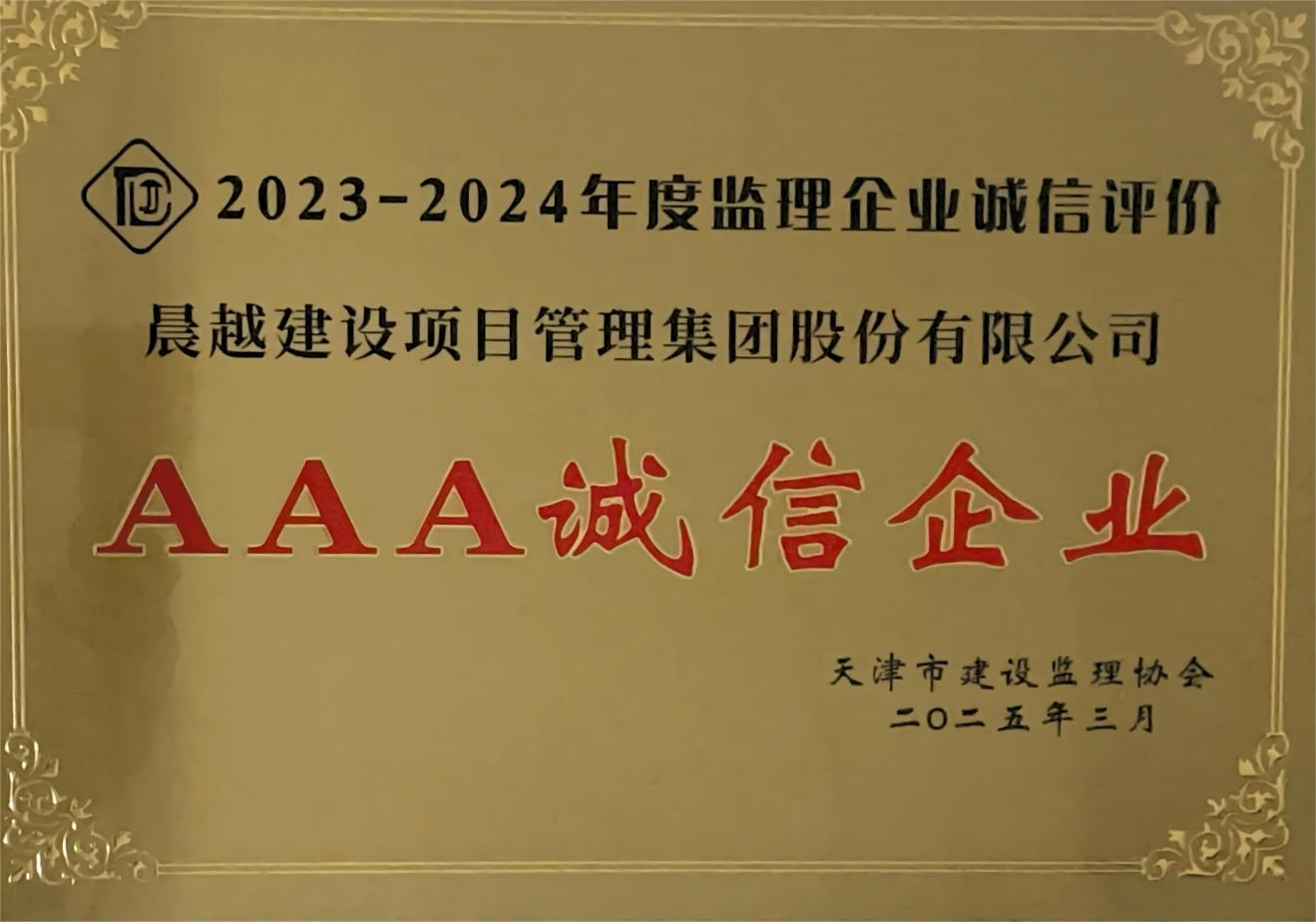 【晨越动态】集团荣获天津市“2023-2024年度监理企业AAA诚信企业”称号
