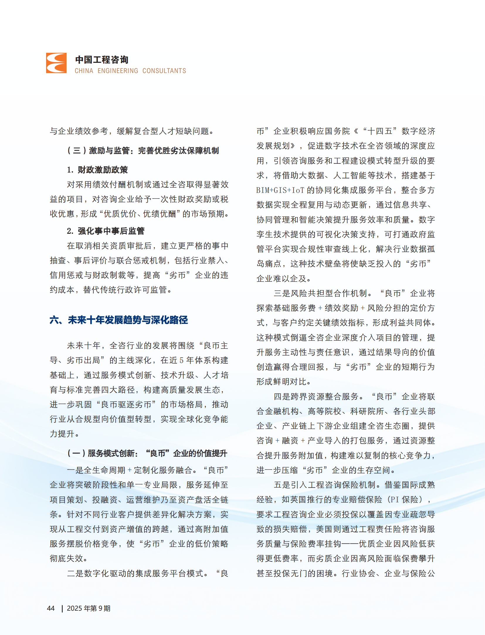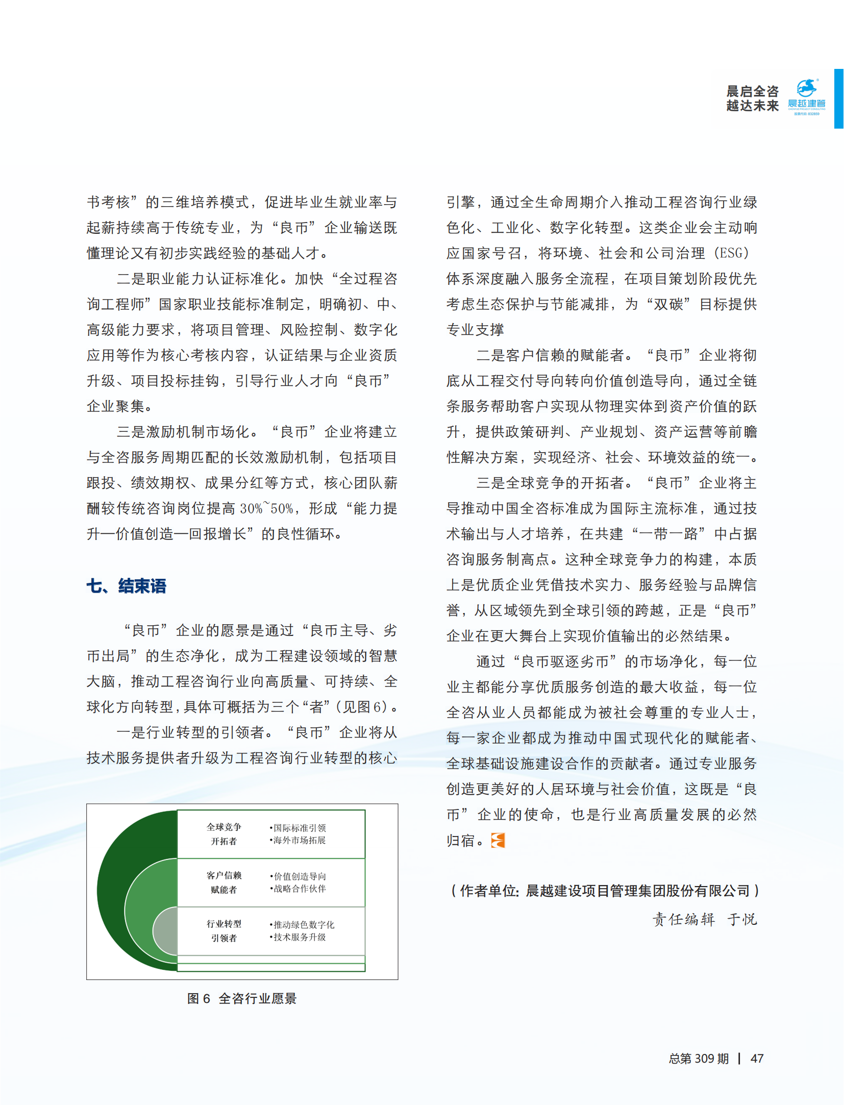 此次文章发表,不仅为行业同仁提供了一份高质量的全咨实践指南和理论参考,更以专业视角展现了全咨市场发展规律,助力行业突破全咨发展瓶颈,以期凝聚“良币驱逐劣币”的行业共识,推动全过程工程咨询升级换代。