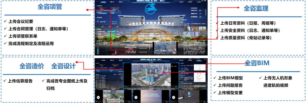 作为 EPC(工程总承包)项目,四川大学华西高新医院一期项目对协同管理要求极高,涉及专业分包众多,需确保多方协同、进度管控、方案优化、安全管理、质量管理等工作有序推进。对此,集团引入全咨数字化管控平台,以 “BIM + 管理” 为核心载体,通过无代码、低代码模式实现项目参建方的高效组织与管理,彻底解决传统管理系统 “通用性强、针对性弱” 的痛点。该平台实现了合同、安全、质量等全类型数据的可追溯管理,不仅显著提升项目管理效率,更充分展现了晨越建管集团的数字化管控能力。