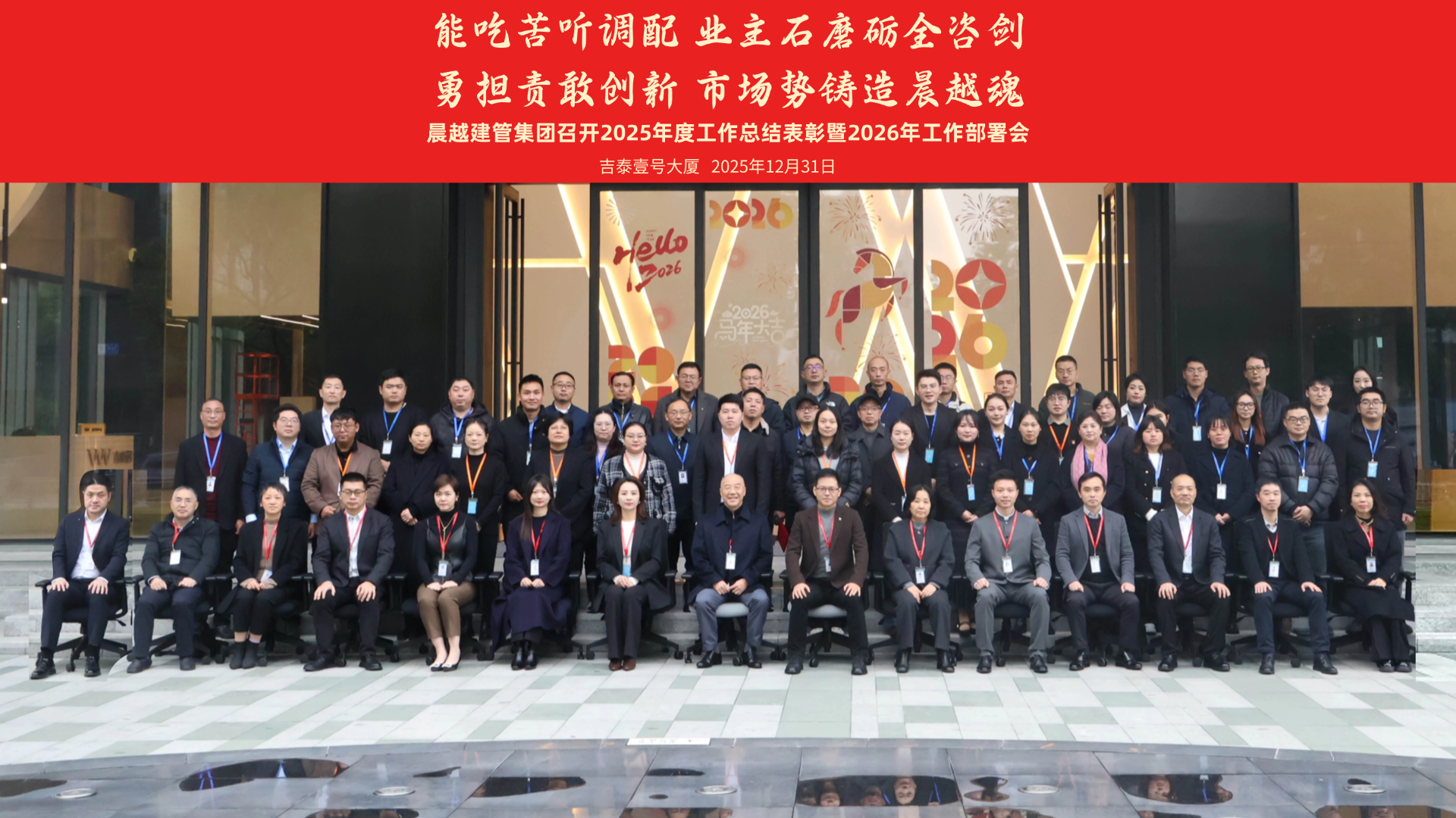 此次大会不仅全面梳理了集团2025年的发展脉络,更凝聚了全员共识、明确了2026年的奋斗目标。站在新的历史起点,全体晨越人将以此次会议为契机,秉持“能吃苦、听调配、勇担责、敢创新”的精神内核,以更加坚定的信念、更加务实的作风、更加创新的举措,扎实推进各项工作落地见效,共同谱写晨越建管集团高质量发展的新篇章。