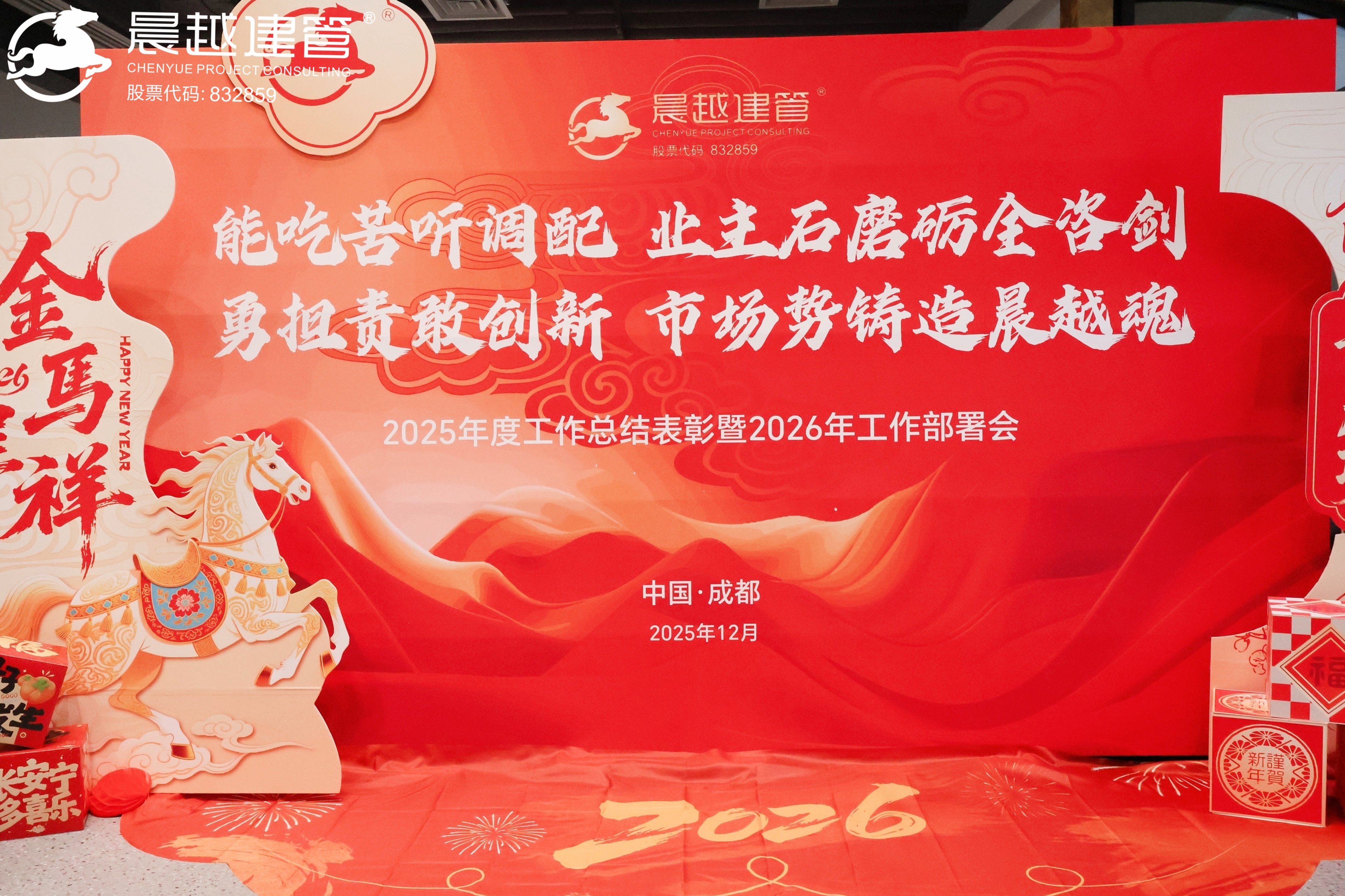 岁末收官启新程,凝心聚力谋发展。2025年12月31日,晨越建管集团“2025年度工作总结表彰暨2026年工作部署会”在吉泰壹号大厦隆重举行。本次会议以“能吃苦听调配,业主石磨砺全咨剑;勇担责敢创新,市场势铸造晨越魂”为主题,全面复盘2025年发展成果,精准部署2026年战略任务。集团党委书记、董事长王宏毅出席会议并发表讲话,集团营销体系、管理体系、生产体系及各子公司主要领导、核心骨干通过“线上+线下”方式参会。
