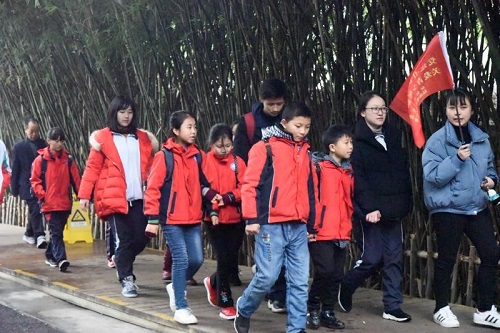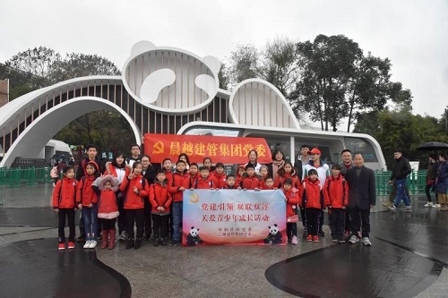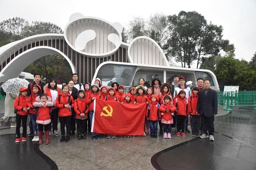 时值寒冬时节,腊梅飘香,细雨蒙蒙,元旦新年之际,党旗、国旗迎风招展。晨越集团党委、纪委3人,组织成都九中(树德)外国语学校高中生11名、广元市朝天区大滩镇贫困小学生20名、两校带队教师各5人,冒着寒风冷雨,兴高采烈,汇聚到成都熊猫基地,开展爱国主义教育主题活动。