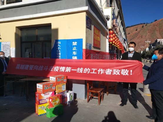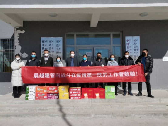 疫情防控之余,晨越建管集团作为非公党委牢记使命担当,组织各分公司、办事处送物资到当地防疫部门,对战斗在疫情一线的工作者进行慰问。