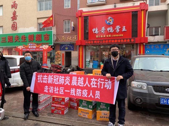 2月9日,晨越大连分公司先后走访当地社区基层工会组织,为疫情防控一线的工作人员送去了矿泉水、消毒酒精、方便面等物资,把晨越人的关怀和温暖送到每一位防疫战士的心坎上。