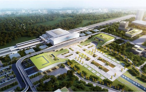 自贡东站配套设施项目总占地面积约3.5km2,主要由公共建筑、市政道路和桥梁等工程组成。其中公共建筑总面积约25万m2(地上约11万m2;地下约14万m2)。市政工程包括1号、2号、3号、4号线道路工程,总长约3.8km(另下穿隧道总长约1.6km),高架桥主线长约1.07km。