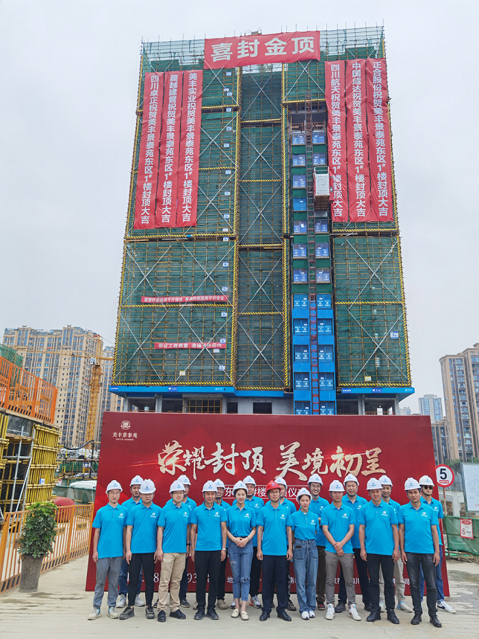 美丰景泰苑工程自2022年10月25日取得东区施工许可证正式开工以来,历经7个月,最终实现1#楼封顶。建设过程中,项目面临新冠疫情、冬季环保、春节放假等因素影响,各参建单位齐心协力,在确保安全、质量的前提下,日夜兼程,按照既定计划,顺利实现1#楼主体结构封顶目标,为项目整体按时竣工交付打下了坚实基础。
