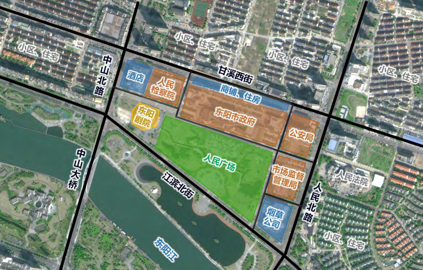 项目总投资为67000万元,主要建设内容包括三个方面:一、建设一个总建筑面积为68854.89㎡的地下一层甲类单建式人防工程,结合人防工程设置地下停车库根本解决项目周边停车难问题。平时可提供1546个停车位的地下停车库,战时可解决21609人掩蔽问题。二、优化项目周边交通组织,对项目周边8条市政道路进行提升改造,加强通行效率,通过合理分流解决项目周边道路拥堵问题。三、重构市人民广场的空间形态,打造景观绿化面积约8万平米的复式景观,充分展示东阳城市形象,为市民提供一个休憩娱乐的好去处。