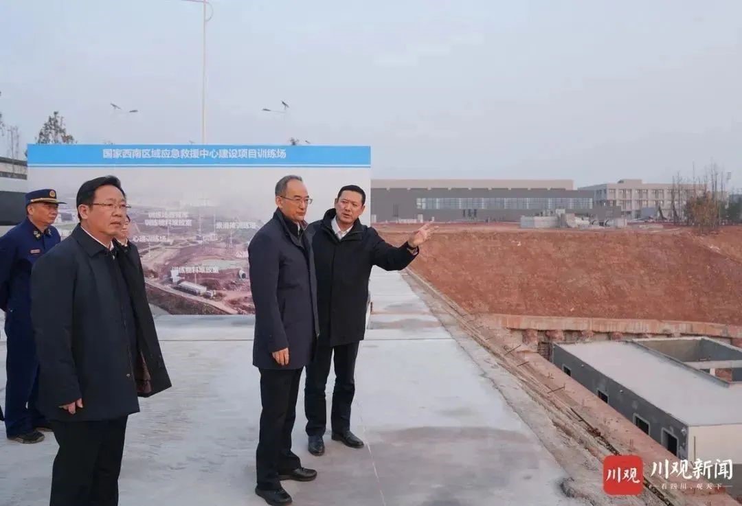 黄强省长走进中心技术业务楼、综合体育训练馆、装备储运仓库和实战训练场等地,了解训练设施建设、设施设备安装调试、项目竣工验收等情况,询问救援培训、物资储备等计划安排。他代表省委省政府对应急管理部的支持指导表示感谢,对参建各方克服困难、连续奋战取得的项目建设成效给予充分肯定。黄强省长强调,要不折不扣贯彻习近平总书记关于防灾减灾救灾工作的重要指示精神和中央经济工作会议精神,坚持高质量发展和高水平安全良性互动,全力加快项目冲刺收尾工作,确保中心尽早建成投用,充分发挥专业应急救援“尖刀”“拳头”作用,为守护人民群众生命财产安全、护航四川高质量发展贡献力量。