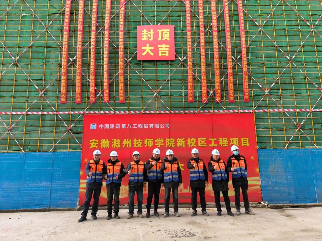 近日,由晨越建管集团承担全过程工程咨询服务的安徽滁州技师学院新校区工程举行主体结构全面封顶仪式,标志着该工程建设取得重要的阶段性胜利。