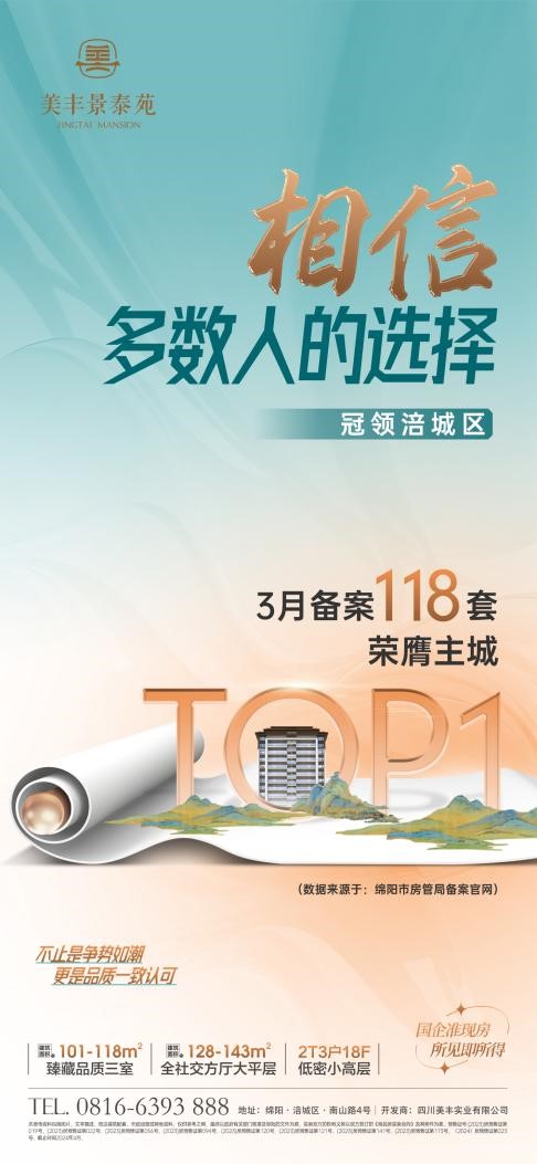截至3月,美丰景泰苑住宅备案套数118套,获绵阳主城TOP1!