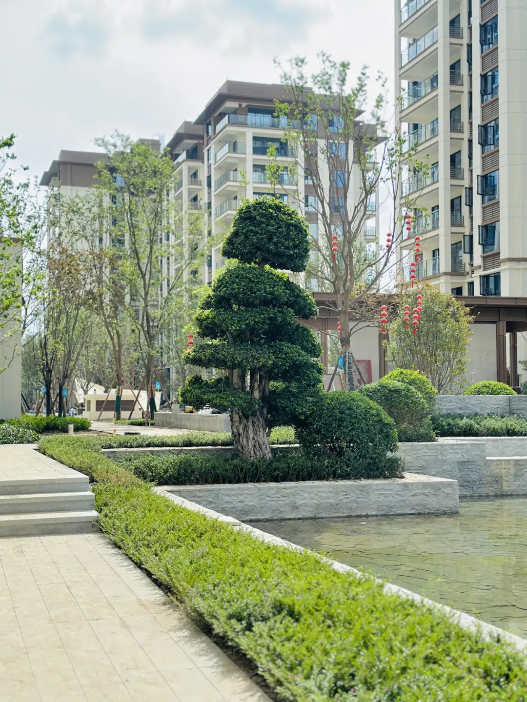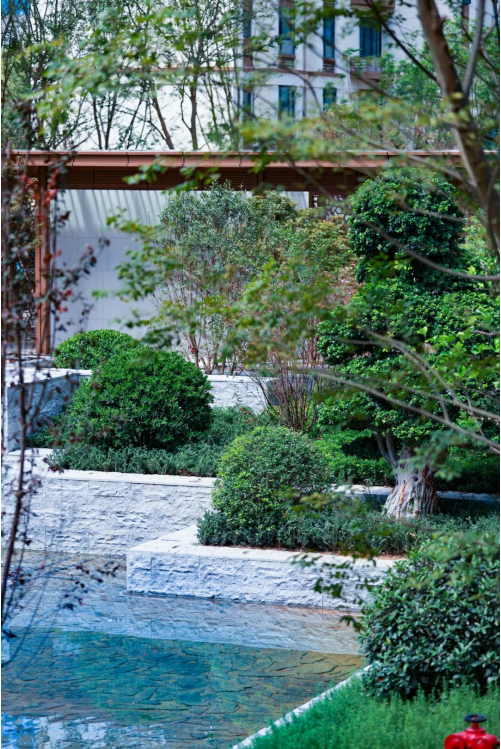 清晨,晨雾缭绕,中庭水景与楼宇完美相接,水雾升腾,鸟语花香;傍晚,夕阳西下,小区的一切都染上了一层朦胧、金色的光辉,如诗如画。