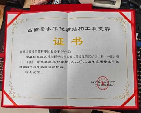 集团承担工程监理工作的沈阳医学院附属第二医院北院区扩建工程(一期)项目凭借卓越的工程质量和严格的过程管理,在2024年度辽宁省高质量水平优质结构工程竞赛中获奖。