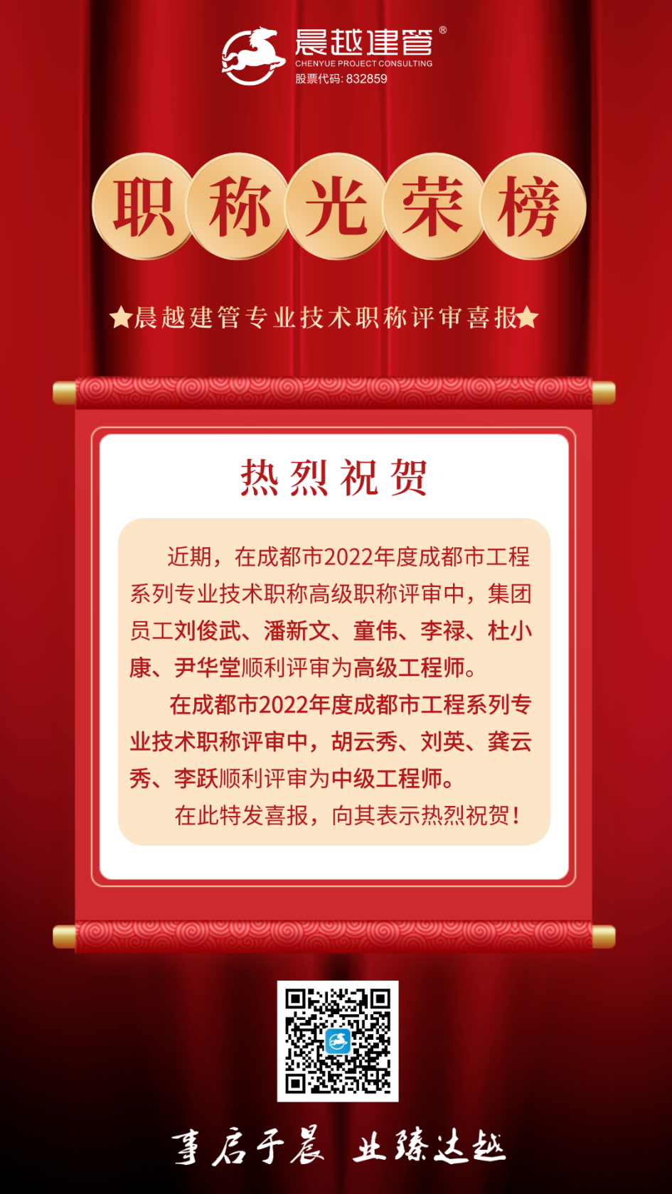热烈祝贺晨越建管集团员工获评中高级工程师职称
